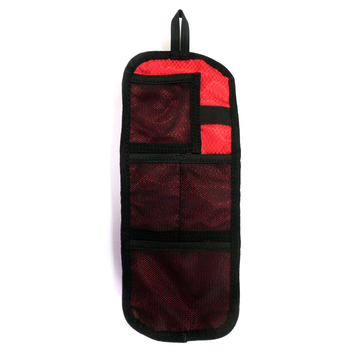 - Bolsillo interior desmontable de color rojo con varios compartimientos