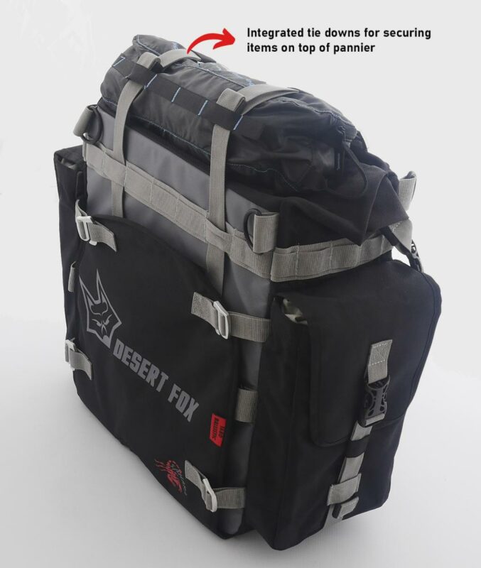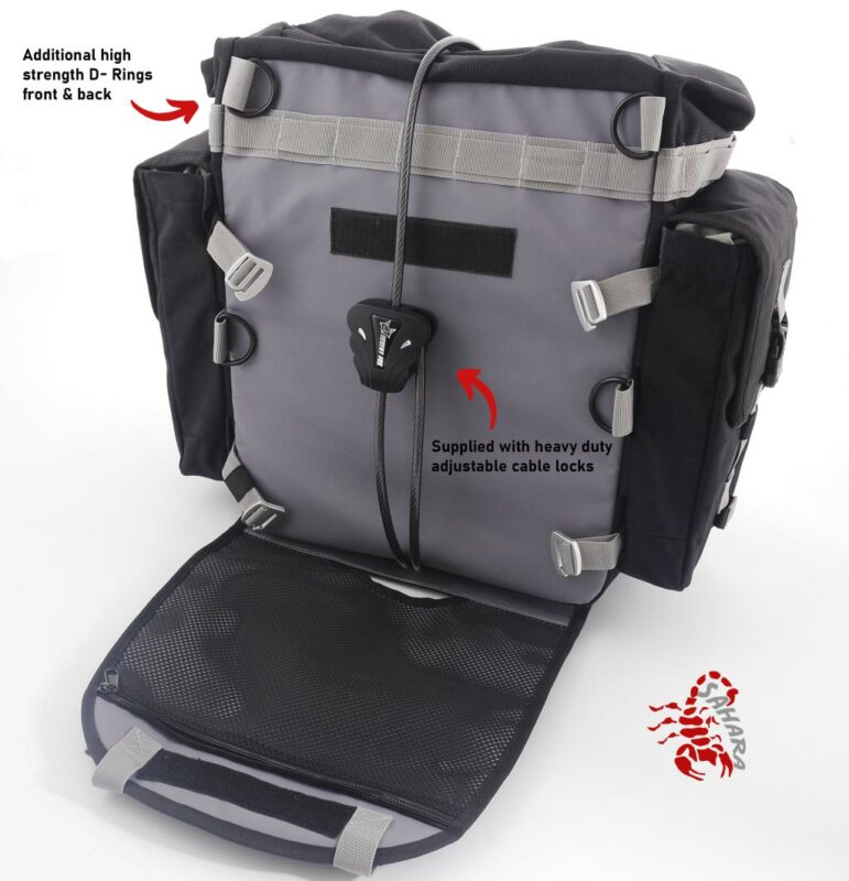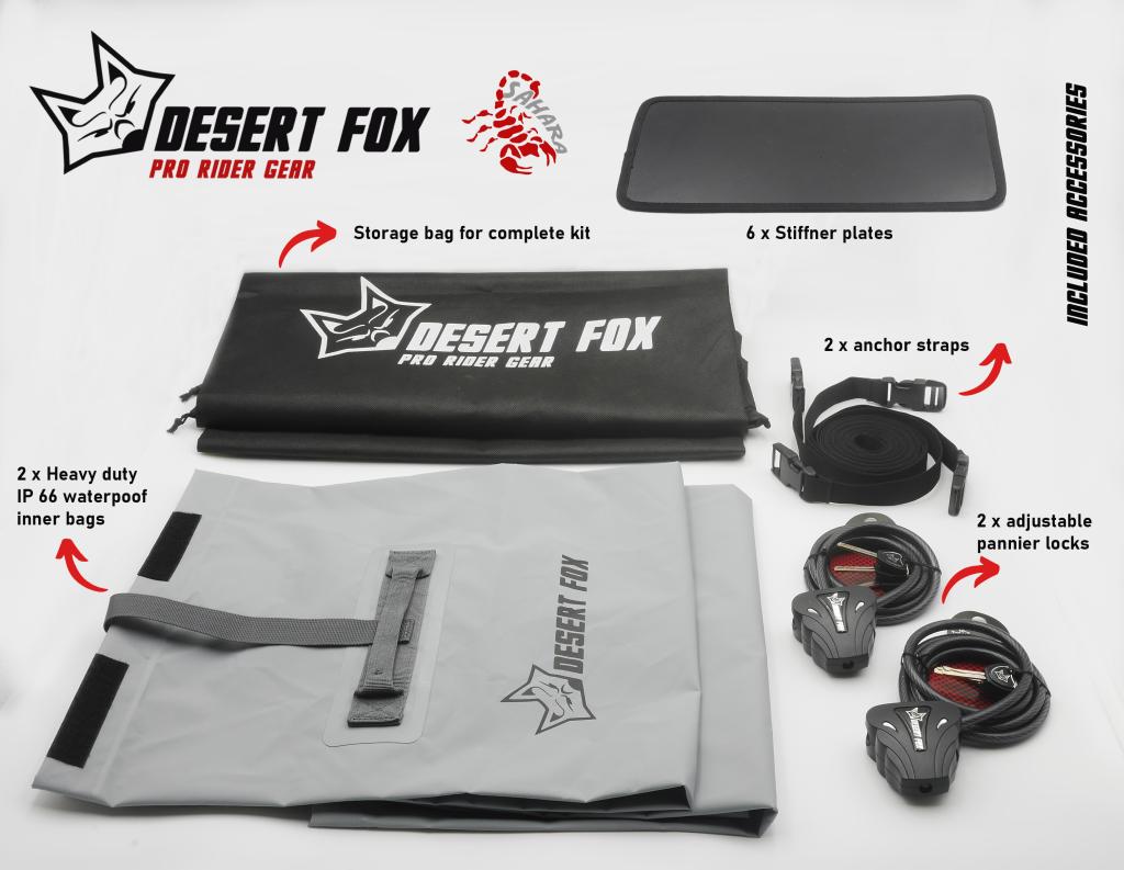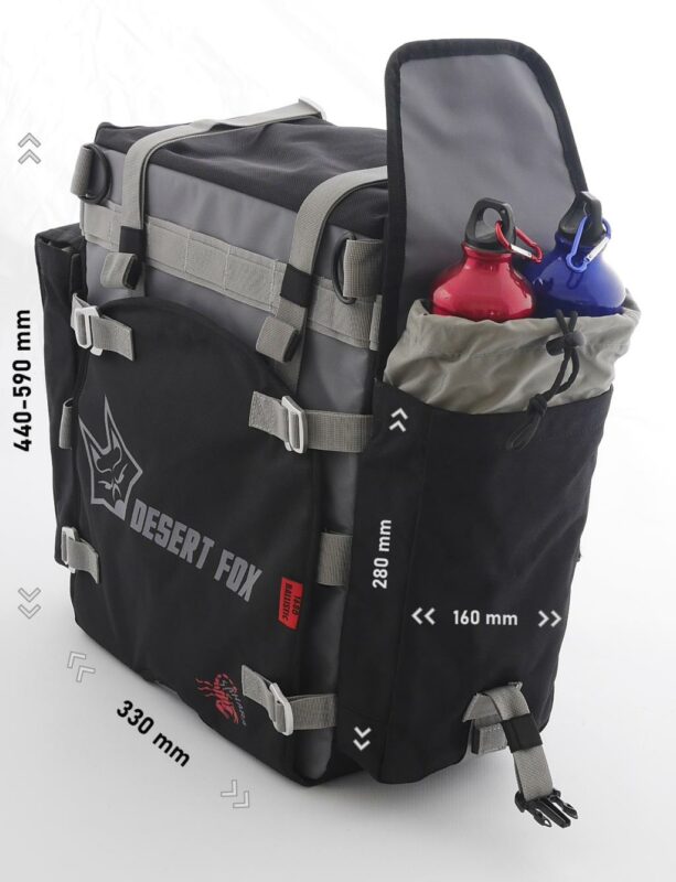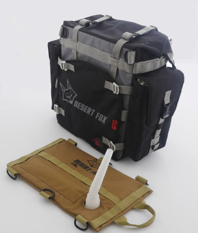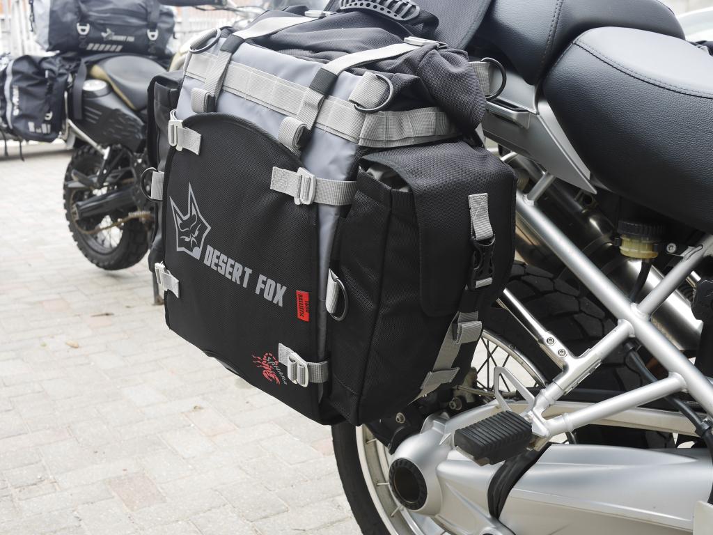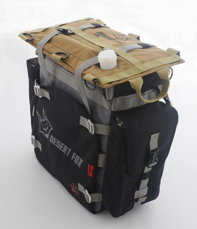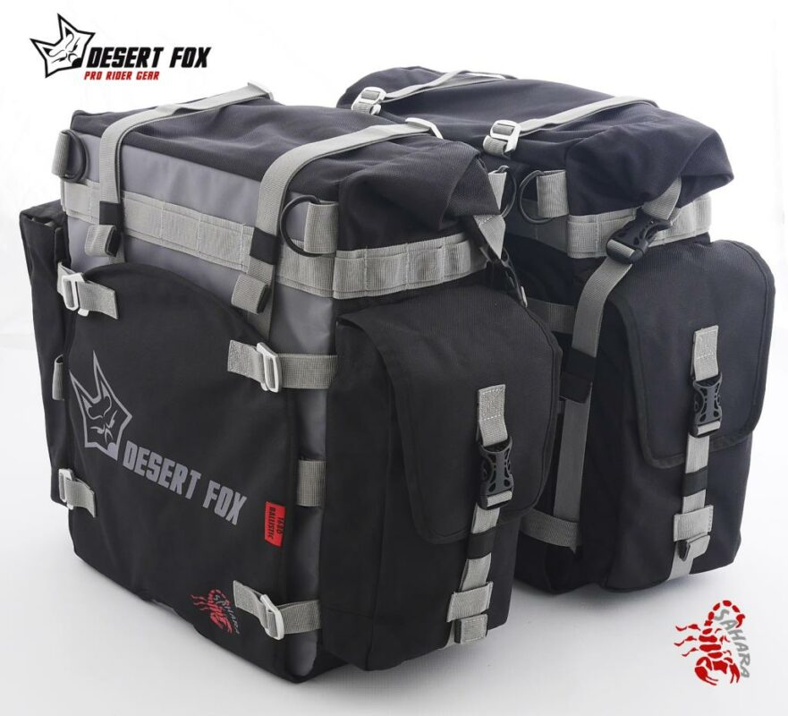 La Desert Fox Alforja SAHARA es un sistema premium de alforjas blandas para motocicletas, diseñado para aventureros que enfrentan terrenos exigentes. Fabricada con nylon balístico 1680D y tarpaulina 600D, ofrece una resistencia superior a la abrasión y durabilidad necesaria para viajes largos. Su doble sistema con funda exterior reemplazable y bolsa interior impermeable garantiza protección y practicidad en cualquier condición.