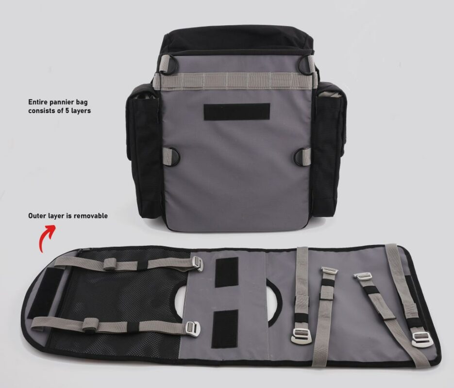 El diferencial de la Alforja SAHARA radica en su construcción de 5 capas que incluye una funda exterior reemplazable única en el mercado, además de hebillas de aluminio 6061-T6 que no se rompen en caídas. Su diseño semi-rígido con paneles ABS removibles y sistemas de seguridad con cables reforzados hacen que sea confiable tanto para viajes urbanos como expediciones off-road, con capacidad para 38 litros por lado y múltiples opciones de fijación.