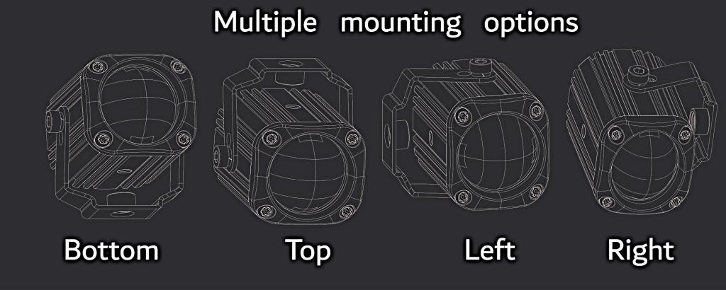 - Carcasa de aluminio CNC T6063 para disipación de calor y resistencia.