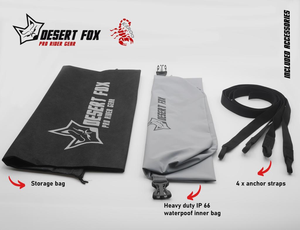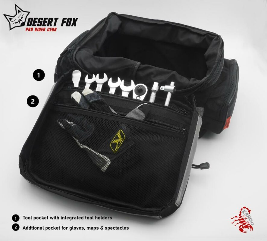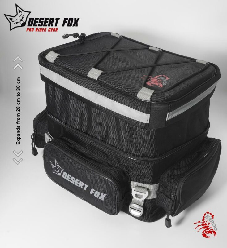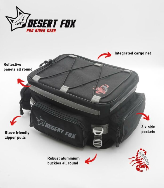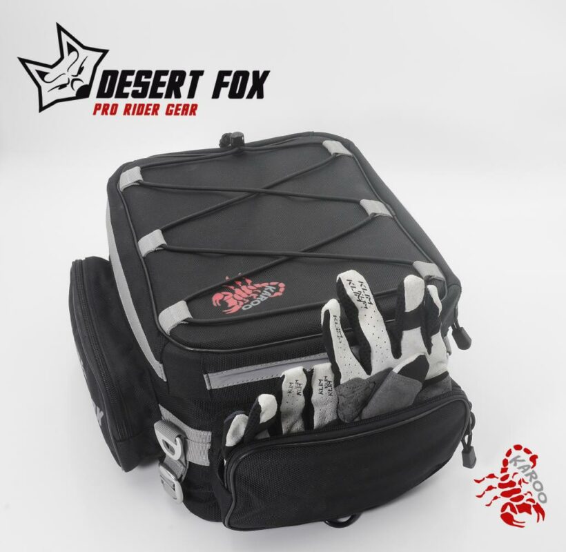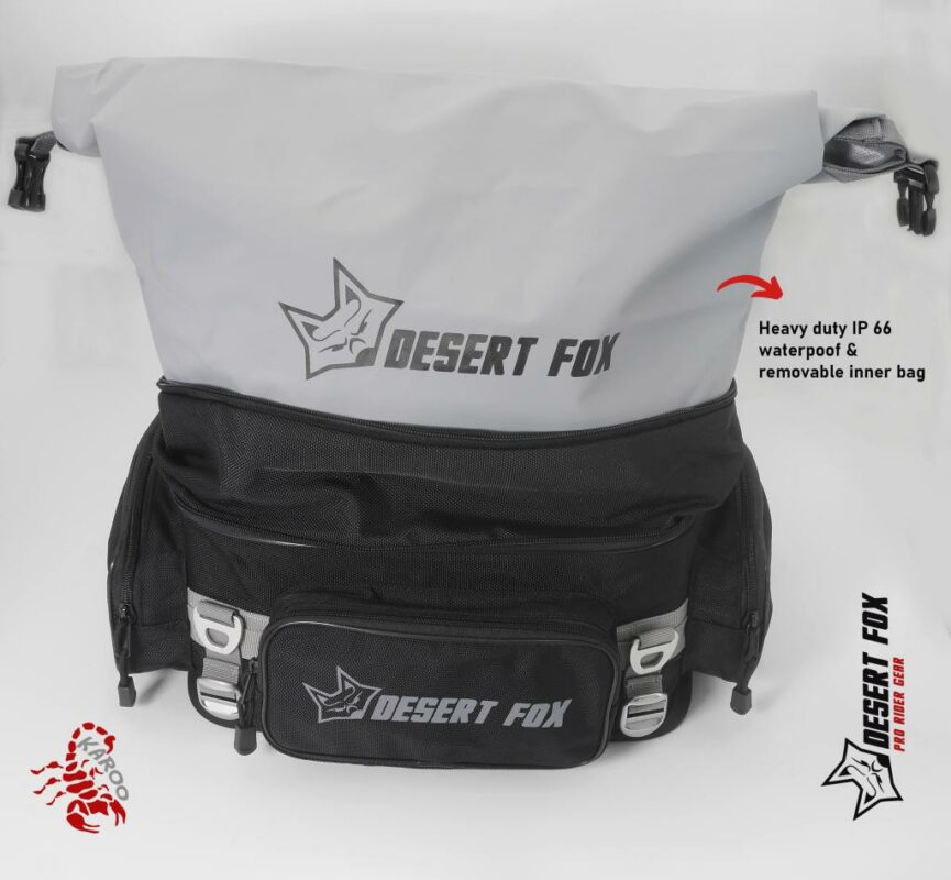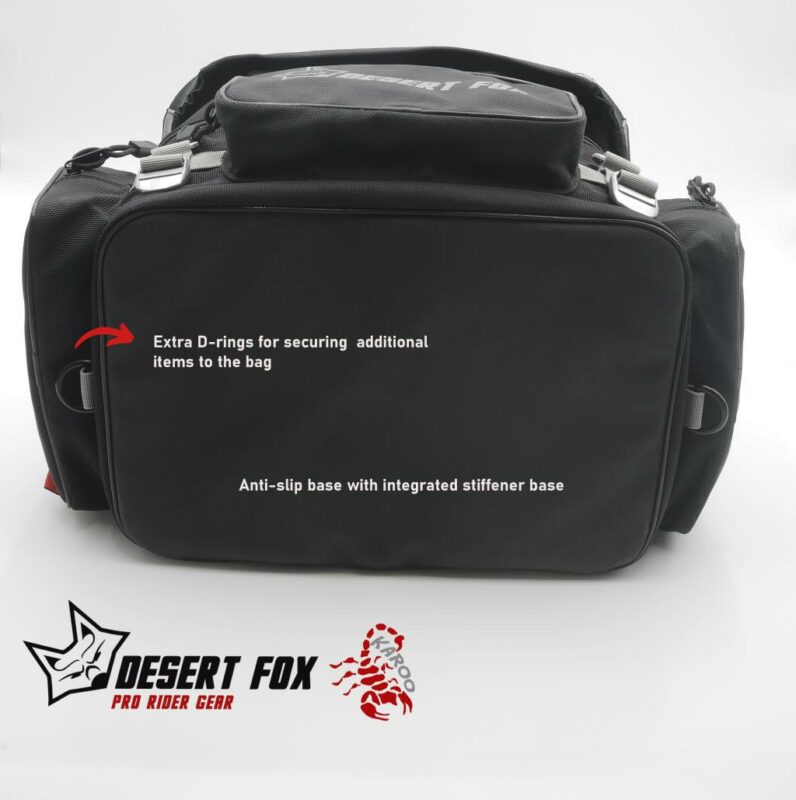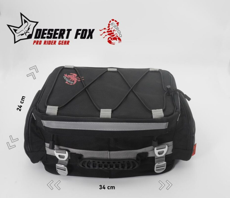 El Bolso Trasero KAROO de Desert Fox es una solución práctica y resistente para motociclistas que buscan comodidad y durabilidad en sus viajes diarios o de fin de semana. Fabricado con nylon balístico 1680D, ofrece protección excepcional contra abrasiones y desgarros, además de ser impermeable gracias a su bolsa interior extraíble. Su diseño expandible y fácil montaje sin herramientas lo hacen ideal para transportar objetos con seguridad y estilo.