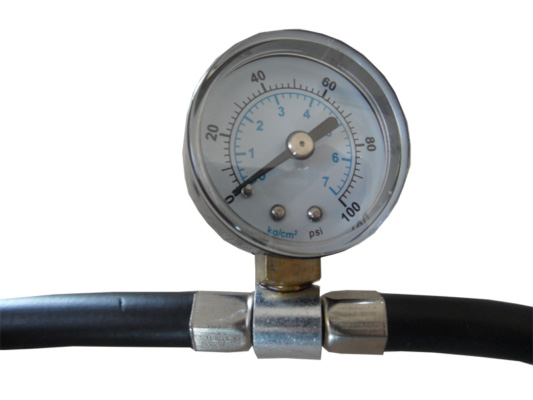 - Manómetro integrado en la manguera con lecturas en Bar y PSI