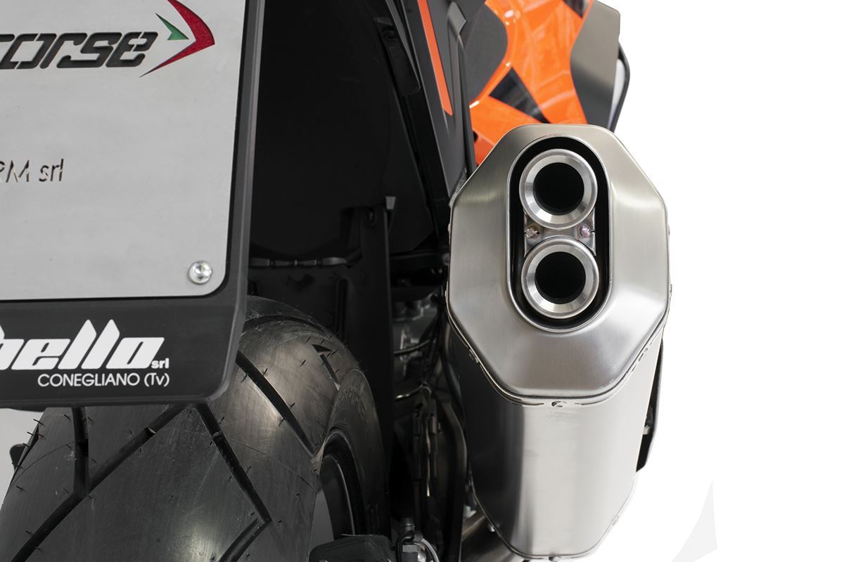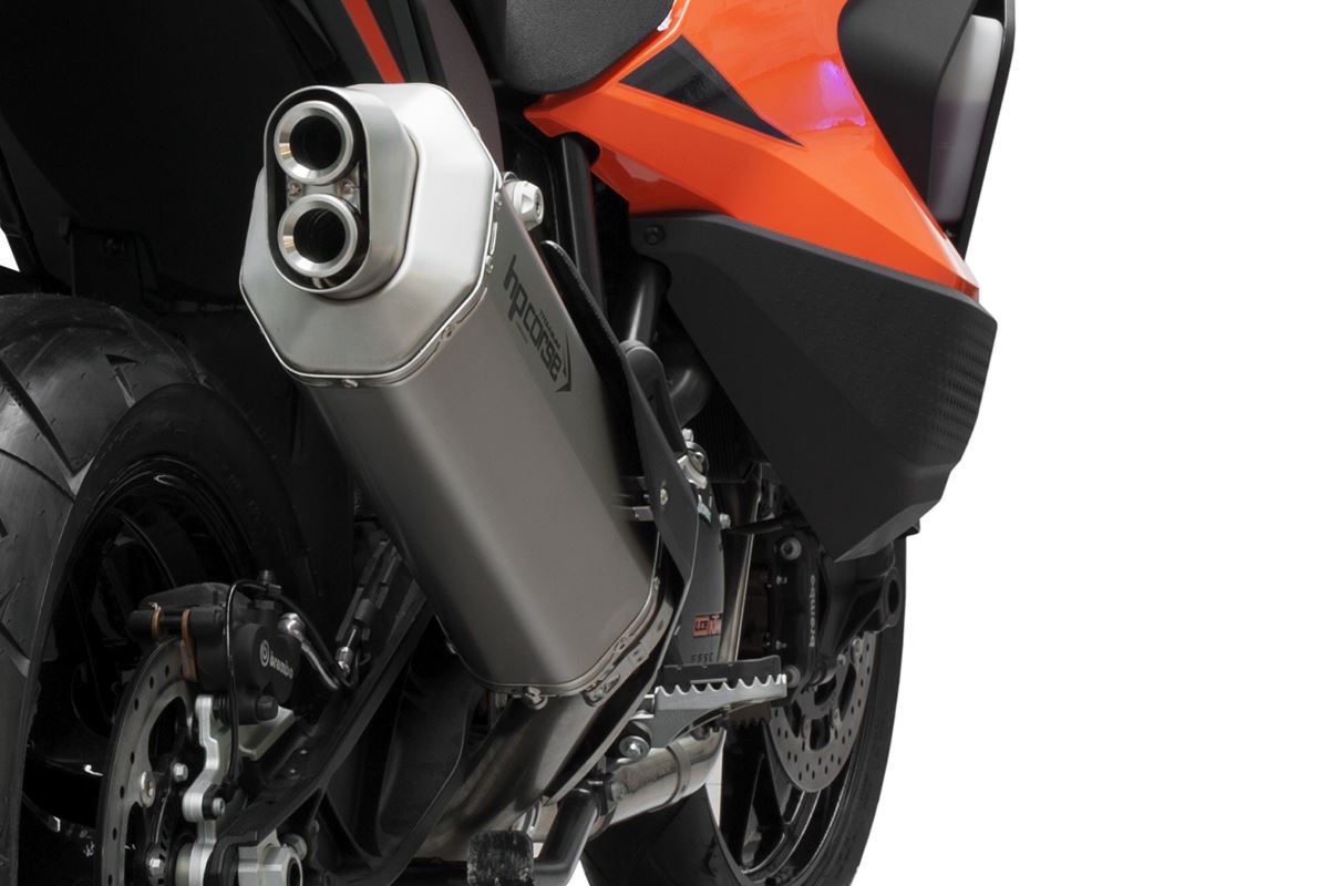 El escape 4-TRACK RR de Hp Corse es un silenciador diseñado para ofrecer potencia y fiabilidad en las condiciones más exigentes, ideal para vehículos de aventura tanto on como off road. Cumple con la normativa Euro 5 y aporta un rendimiento sobresaliente, siendo además más ligero que el escape original, lo que mejora la experiencia de conducción sin comprometer la legalidad en carretera.