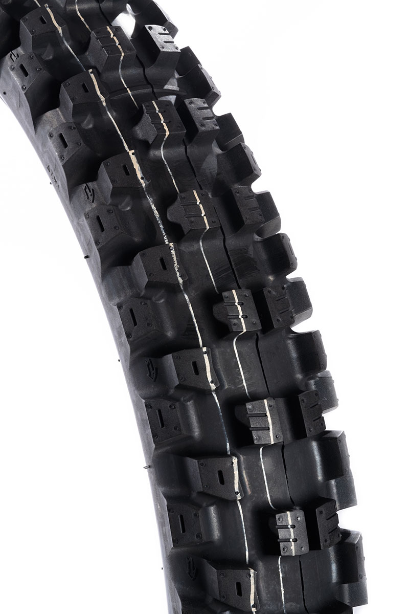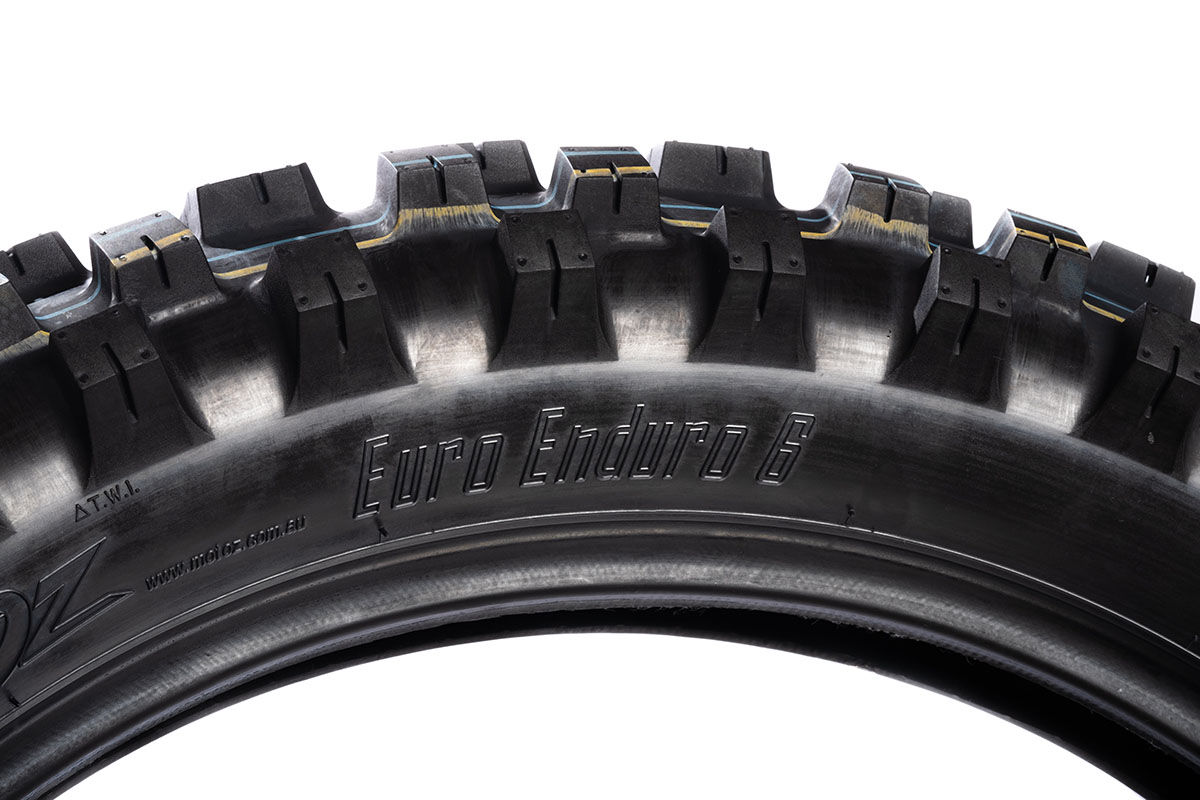 El diferencial del Enduro 6 radica en su diseño exclusivo para condiciones europeas variables, combinando paredes laterales finamente ajustadas y bordes mordientes en cada bloque de la banda de rodadura para máxima tracción. Está certificado por FIM y ECER75, asegurando calidad y seguridad tanto para competencias como para uso público.