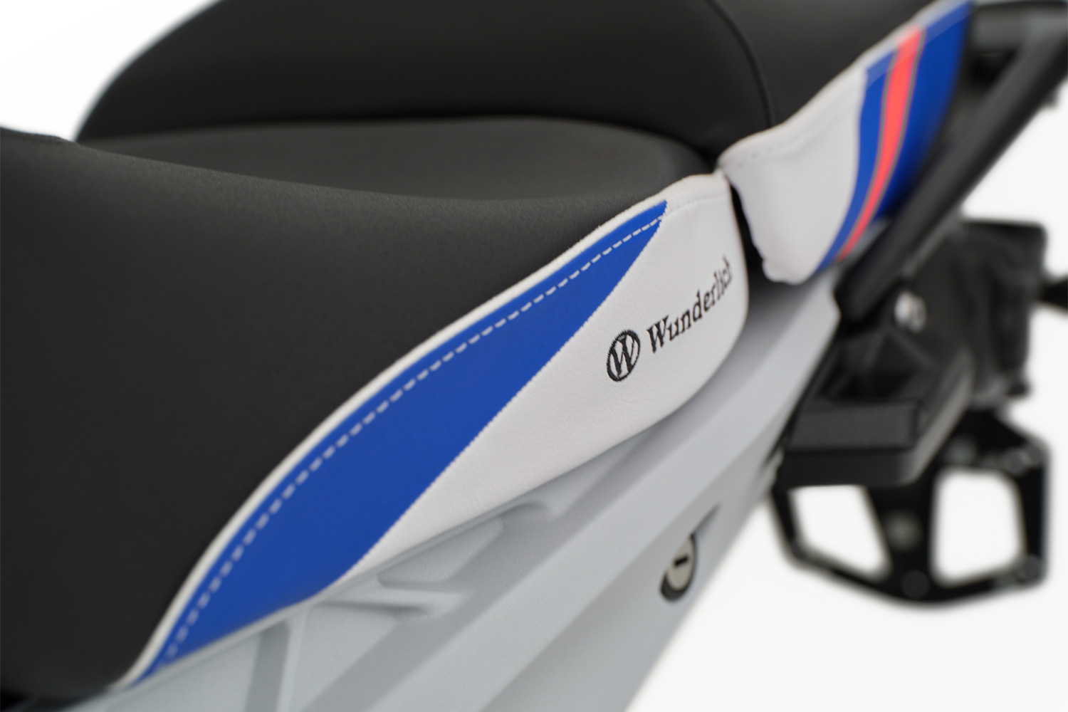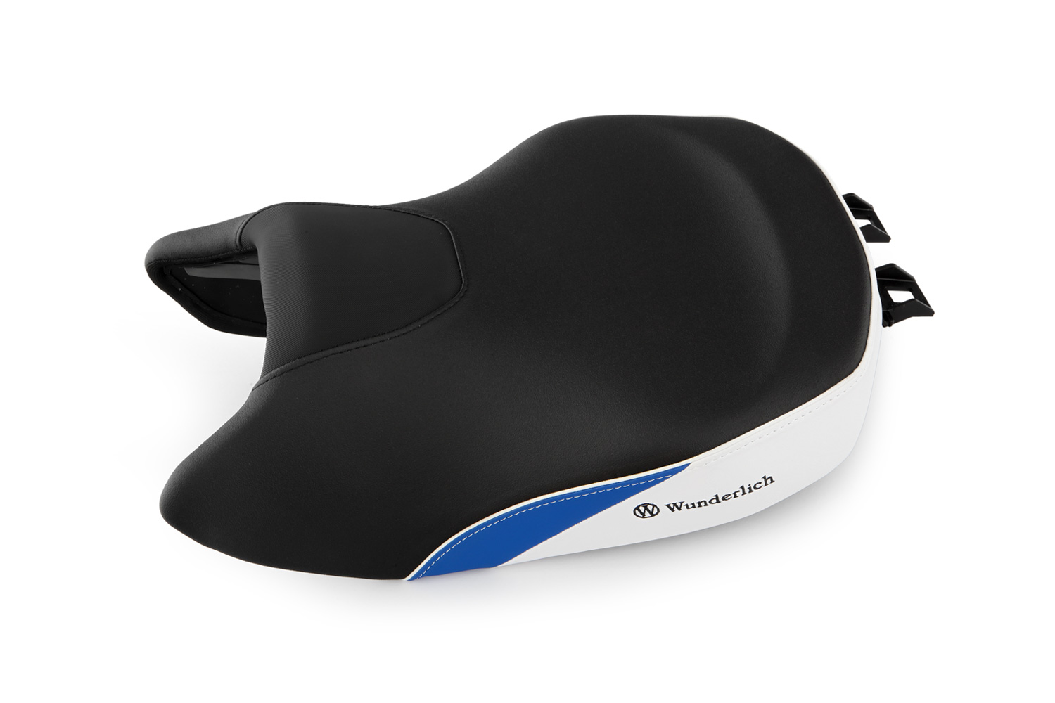 Este asiento se diferencia por su innovadora tecnología ThermoPro y un núcleo ergonómico 3D patentado que previene el hundimiento con el paso del tiempo y distribuye la presión uniformemente para evitar puntos de presión incómodos. Su diseño exclusivo en estilo Trophy con detalles en azul y blanco, junto con su producción artesanal en Alemania, ofrece un producto premium y funcional que maximiza el confort y el control incluso en frenadas bruscas.
