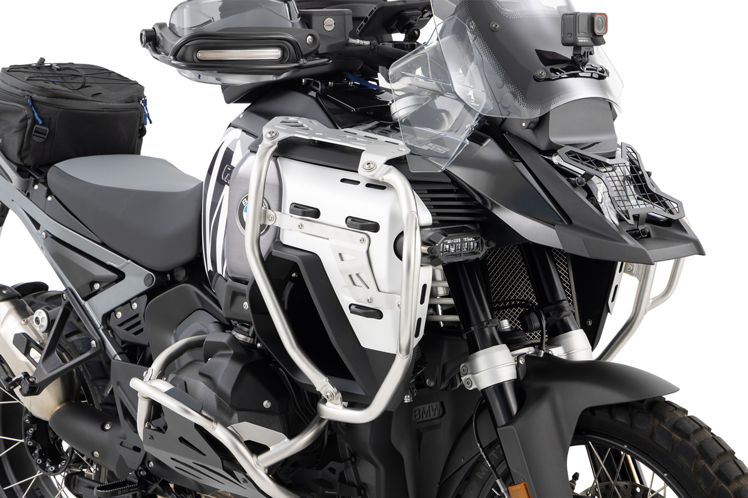 La Defensa Alta para Tanque Ultimate Pro de Wunderlich es un protector robusto y diseñado para la BMW R 1300 GS Adventure, que ofrece máxima protección para el depósito de combustible y sus paneles laterales. Fabricado con tubos de acero inoxidable de precisión y aluminio anodizado, este protector ofrece un ajuste perfecto y fácil instalación Plug & Play, protegiendo eficazmente contra impactos y vuelcos durante la conducción Adventure.