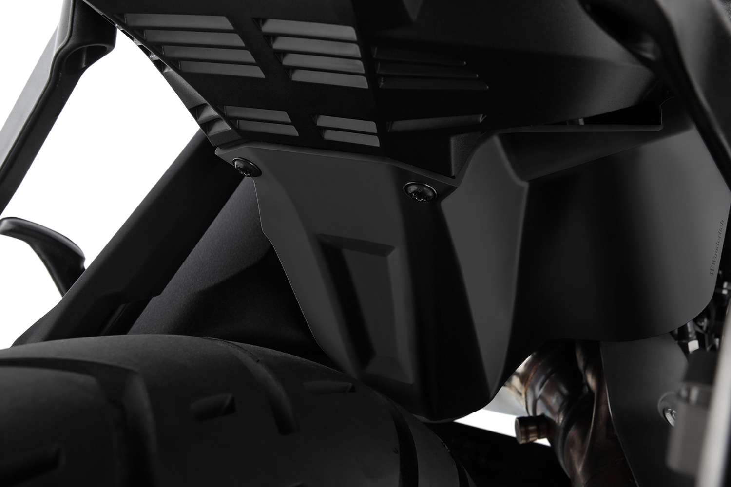 Este guardabarros interior destaca por su excelente protección en zonas críticas como el cojinete del basculante, basculante, colector y amortiguador, justo delante de la rueda trasera, reduciendo significativamente el desgaste causado por suciedad y agentes externos. Su fabricación alemana con plástico ABS de alta calidad y su fácil instalación lo convierten en una solución confiable y duradera para quienes buscan mantener su moto en óptimas condiciones con una pieza que combina funcionalidad y diseño, incluyendo el logo distintivo de Wunderlich.